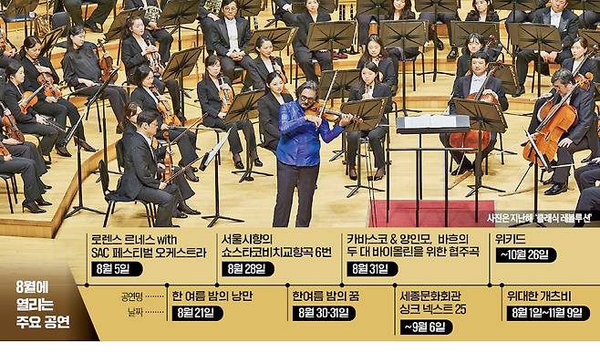한경아르떼필하모닉도 계절감을 살린 공연을 선보인다. 8월 21일 최수열 지휘로 생상스 바이올린 협주곡 3번과 드뷔시 ‘바다’를 들려준다. 세계적 음악 매니지먼트사인 해리슨패럿과 지난 6월 전속 계약을 체결한 17세 바이올리니스트 김서현과 협연한다. 같은 달 30일과 31일엔 홍석원 지휘로 오페라 ‘한여름 밤의 꿈’을 공연한다.