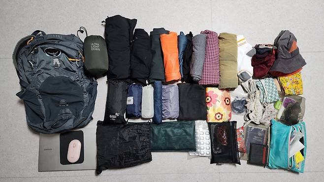 | ▲ 펼쳐놓은 나의 짐. 더 뺄 것은 없을까? |