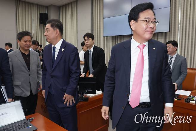 | ▲ 김병기 국회 운영위원장이 29일 서울 여의도 국회에서 열린 운영위원회 전체회의에서 송언석 국민의힘 비상대책위원장 겸 원내대표와 인사한 뒤 헤어지고 있다. |