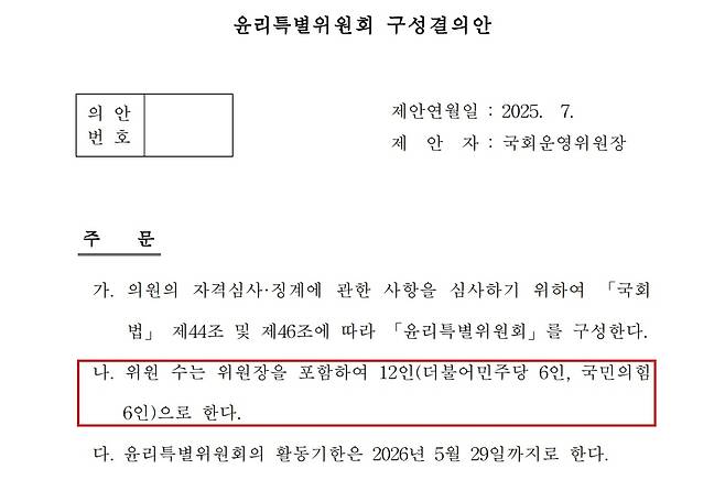 민주 6-6 국힘, 윤리특위가 다룰 것들