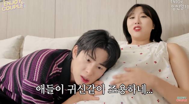 30일 '엔조이커플' 채널에는 "쌍둥이들이 꿈틀거린다 엄청난 태동에 감격한 에겐남편의 반응"이라는 제목의 영상이 업로드 됐다.