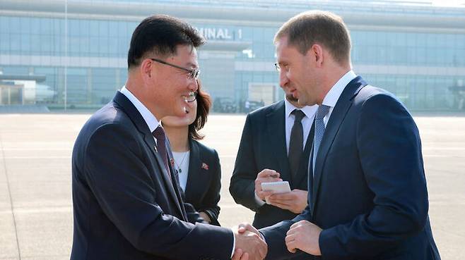 ▲ 북러 정부간 무역경제 및 과학기술협조위원회 러시아측 위원장인 알렉산드르 코즐로프 천연자원환경부 장관과 일행이 지난 29일 평양을 출발했다.