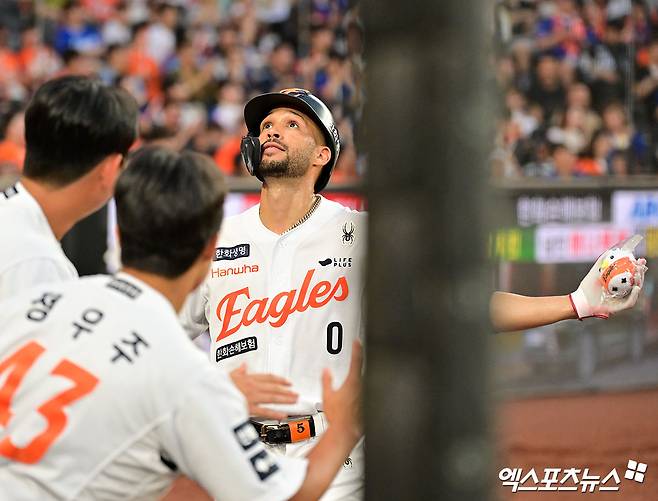 (엑스포츠뉴스 대전, 김한준 기자) 30일 오후 대전 한화생명 볼파크에서 열린 '2025 신한 SOL Bank KBO리그' 삼성 라이온즈와 한화 이글스의 경기, 3회말 1사 한화 리베라토가 솔로 홈런을 날리고 있다.
