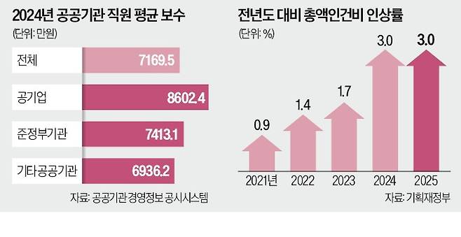 직원들의 임금 수준이 높을수록 통상임금 요건 완화에 따른 임금 인상폭은 커진다. 공공기관 경영정보 공시시스템(알리오)에 따르면 공공기관 직원의 연평균 보수는 2023년 기준 공기업이 8412만원에 달한다. 준정부기관은 7283만7000원, 기타 공공기관은 6769만2000원 등 순이다.