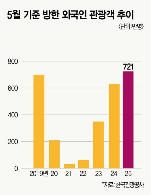 이런 추세는 일회성이 아닐 듯싶다. 현대경제연구원은 올해 외국인 관광객 수가 역대 최고치인 2009만명에 달하고, 이에 따른 관광 수입은 202억5000만달러(원화 약 29조4000억원)를 기록할 것으로 전망했다. 이는 2024년 명목 국내 소비 규모 2.5% 수준으로, 외국인 관광객 유입이 국내 소비를 2.5%포인트 증가시키는 효과를 낸다는 분석이다.