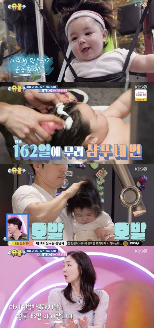 심형탁의 아들 하루는 태어날 때부터 머리숱이 남달랐던 바. 생후 183일에도 불구하고 엄청난 모발 양을 자랑해 눈길을 끌었다.