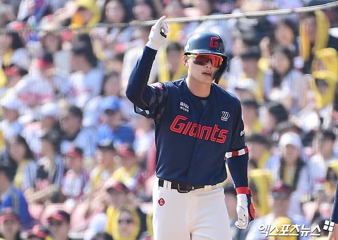 4회 두 번째 타석에서 유격수 땅볼로 아쉬움을 삼킨 윤동희는 2-2로 맞선 5회말 2사 1루에서 우중간 2루타를 터트리며 역전의 발판을 마련했다. 다음 타석에 들어선 유강남이 우중간을 가르는 2루타로 주자 둘을 모두 홈으로 불러들였다.