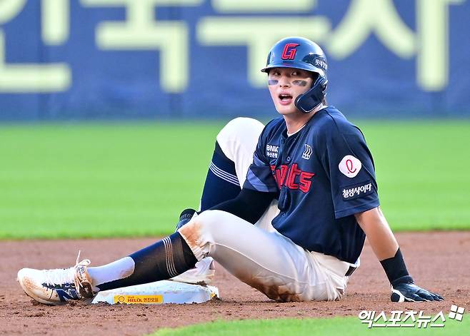 (엑스포츠뉴스 부산, 김유민 기자) 롯데 자이언츠 윤동희가 지난번 부상 부위의 반대쪽인 오른쪽 허벅지에 불편함을 느껴 교체 아웃됐다.