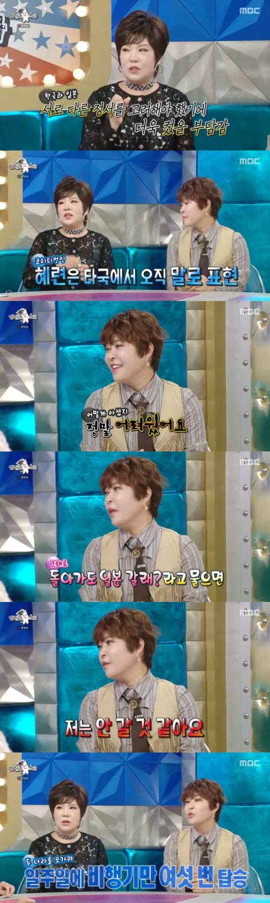 '라디오스타'에서 조혜련이 힘들었던 일본 활동을 회상했다.