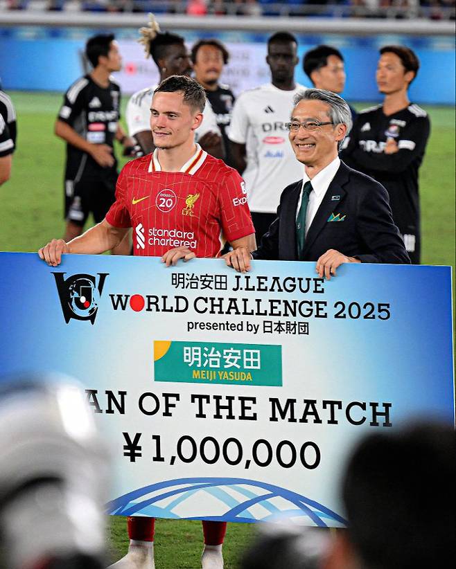 '엔도 보유팀' 리버풀 인기 日 열도 뒤집었다, J리그 주최 최다 관중(6만7032명) 신기록…비르츠 데뷔골로 요코하마 3-1 완파