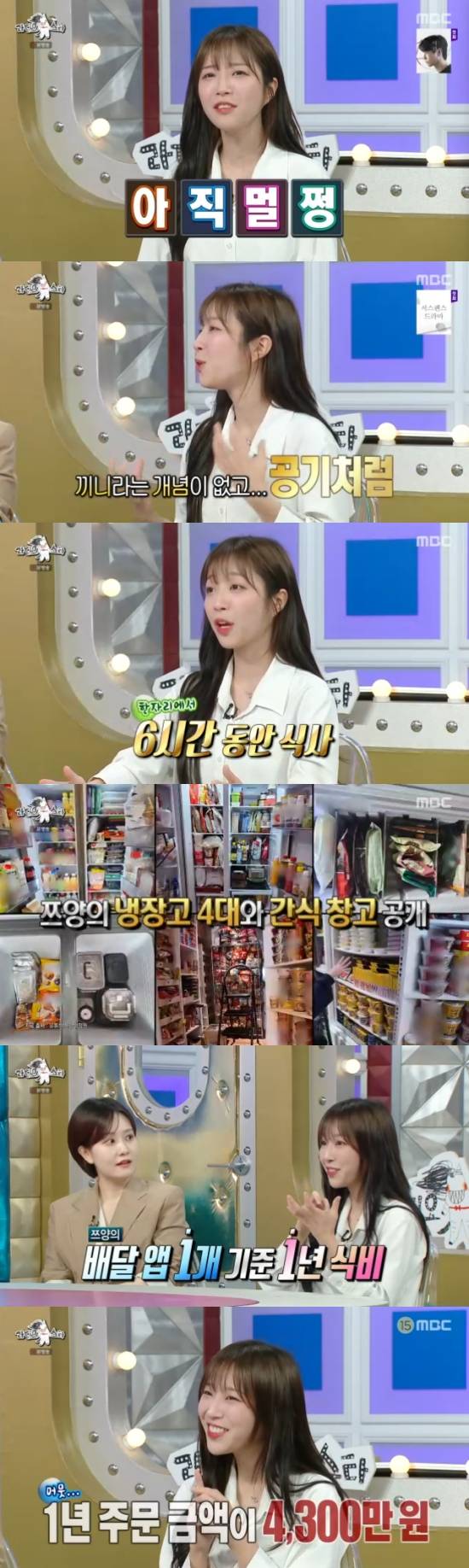 이에 MC들은 "1년 식비를 계산해본 적이 있느냐"고 궁금해했고, 쯔양은 "배달 어플 3개를 돌려서 쓰는데, 1개에서 1년 주문 금액이 4300만원이었다. 배달 음식이 문앞에 여러개 쌓여있을 때도 있다"고 했다.