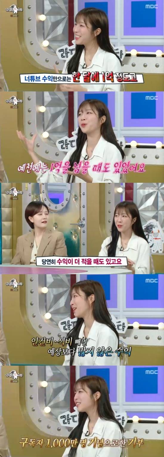 또 기부를 하는 것에 대해 "사랑을 받는 직업이니까 조금씩 나누고 있다. 구독자 1000만 기념으로 1억 기부를 했었고, 지금은 매달 조금씩 기부를 하고 있다"고 덧붙였다.