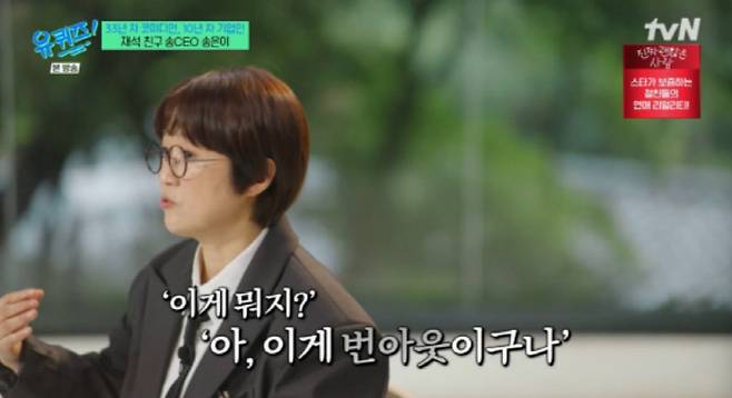 30일 방송된 tvN '유 퀴즈 온 더 블럭'에는 32년 차 코미디언이자 10년 차 기업인 송은이가 출연해 MC 유재석, 조세호와 진솔한 대화를 나눴다.