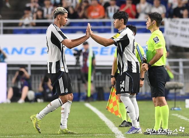 에디 하우 감독이 이끄는 뉴캐슬은 30일 수원월드컵경기장에서 열린 2025 쿠팡플레이 시리즈 1경기서 김판곤 감독이 이끄는 팀K리그에 0-1로 무릎을 꿇었다. 전반 36분 김진규에게 선제 실점한 뉴캐슬은 후반 들어 파상공세에 나섰지만 끝내 득점을 올리지 못했다.