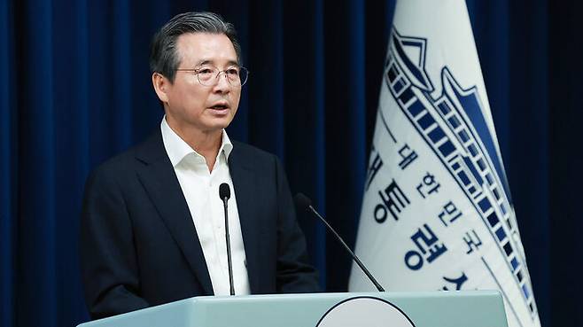 ▲ 김용범 대통령실 정책실장이 31일 서울 용산 대통령실 청사에서 한미 관세 협상 타결과 관련해 브리핑을 하고 있다.