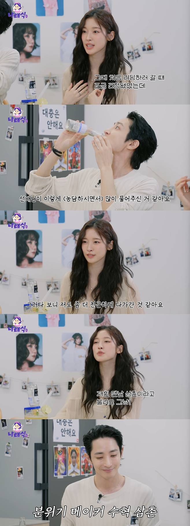 박나래는 아린에게 이수혁의 첫인상을 물었고, 이수혁은 "차가웠겠죠 뭐"라고 받아쳐 웃음을 자아냈다. 아린은 "처음 리딩하러 갈 때 긴장됐었는데 선배님이 많이 풀어주셨다. 그러다보니 저도 좀 더 친근하게 다가갔다"며 이수혁의 배려를 이야기했다.