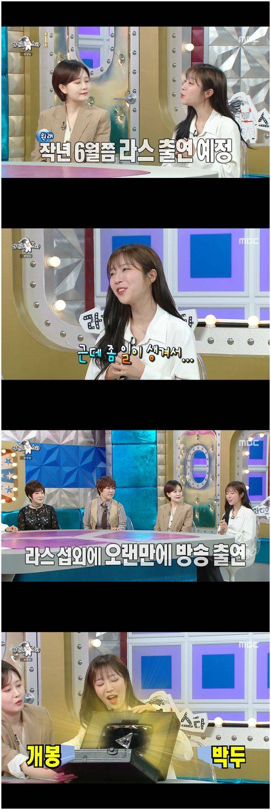 쯔양은 “제가 작년 6~7월 쯤에 ‘라스’에 나오기로 했는데 작년에 일이 있었다. 그래서 캔슬을 내서 죄송해서 나온다고 했다”라면서 “사실 공식적인 이런 방송 출연은 1년 만이다. 출연을 다 미루다가 ‘라스’에서 섭외를 하셔서 기쁘게 나왔다. 무엇보다 라인업이 너무 좋았다. 저는 소심하고 말을 못하는데, 말씀 잘하시는 아나운서 분이나 가수나 개그우먼들이 나오셔서, 편하게 왔다”라며 출연하게 된 계기를 밝혀 박수를 받았다./osen_jin0310@osen.co.kr