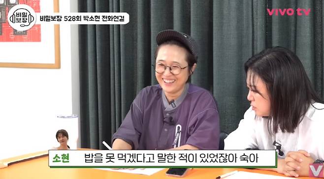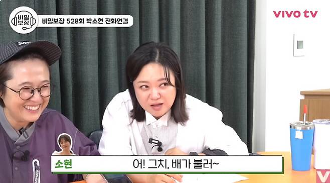 녹화 기준 오후 3시 반이던 그때 송은이는 "오늘 뭐 먹었냐"고 묻자, 박소현은 "지금까지 아직 아무 것도 안 먹긴 했다"며 소식좌임을 다시 한번 인증했다.