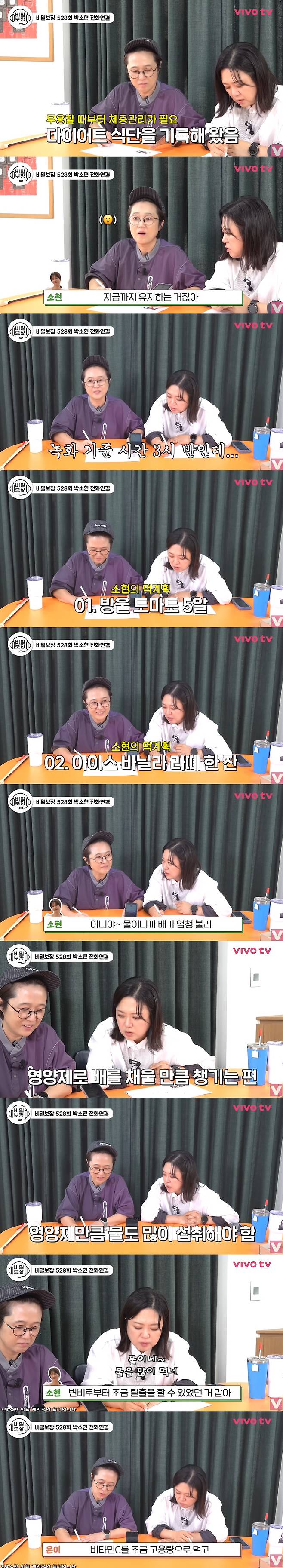 먼저 박소현은 관리 비법에 대해 "초등학교 6학년 때부터 내가 뭘 먹었는지 노트에 쓰고 다이어트 많이 해서 지금까지 유지하는 거다"며 "경험이 다른 사람 보다 진짜 많다"고 말했다.