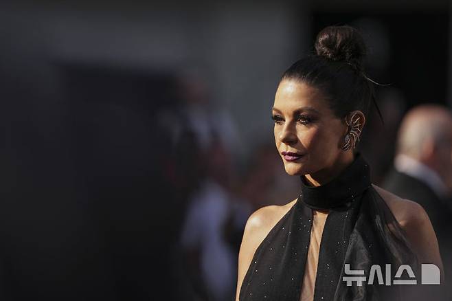 [런던=AP/뉴시스] 배우 캐서린 제타 존스가 30일(현지 시간) 영국 런던에서 열린 넷플릭스 시리즈 '웬즈데이 시즌2' 시사회에 참석해 포토타임을 갖고 있다. 2025.07.31.