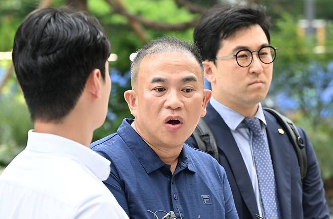 공천 개입 의혹을 받는 ‘정치 브로커’ 명태균 씨가 31일 서울 종로구에 마련된 김건희 특검팀 사무실에 조사를 받기 위해 출석하고 있다.