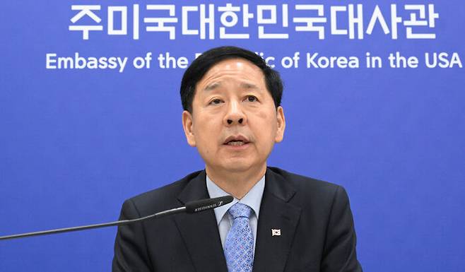 ▲ 구윤철 경제부총리 겸 기획재정부 장관이 30일(현지시간) 미국 워싱턴DC 주미한국대사관에서 열린 '한-미 통상협의 결과브리핑'에서 발표문을 낭독하고 있다.
