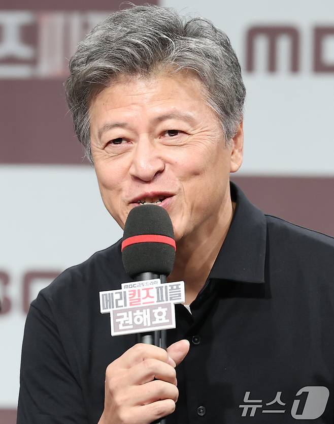 (서울=뉴스1) 권현진 기자 = 배우 권해효가 31일 오전 서울 마포구 MBC 골든마우스홀에서 열린 MBC 금토드라마 '메리킬즈피플' 제작발표회에 참석해 인사말을 하고 있다.