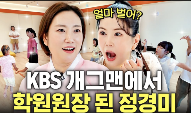 정경미는 학원을 시작하게 된 이유에 대해 “나는 영어를 못한다. 나는 경영하는 거다. 나보다 훨씬 좋은 선생님들이 아이들을 가르친다”며 “뮤지컬이 춤도 추고 노래도 부르고 연기도 한다. 요즘 친구들 중 자기소개도 제대로 못하는 아이들이 많다. 발달 과정에 정말 좋은 프로그램인데, 부모님께 더 어필할 수 있는 방법을 고민하다 영어를 붙이게 됐다”고 설명했다.