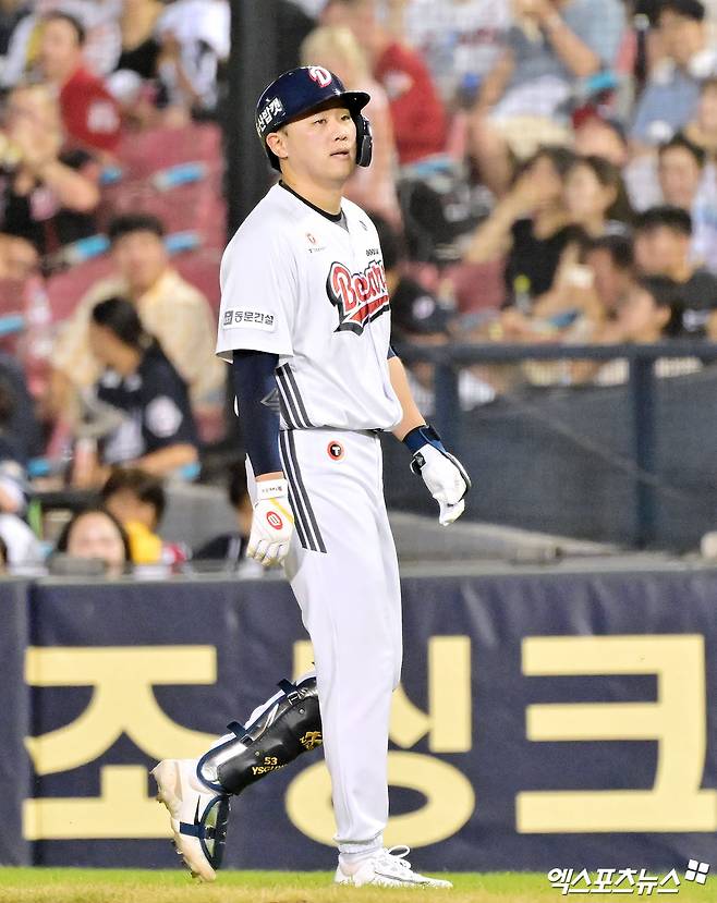 조 대행은 최근 1루수 자리에 다양한 자원들을 기용하고 있다. 전문 1루수가 아닌 베테랑 강승호를 포함해 김동준, 김민석, 박계범 등이 1루수 출전 기회를 받았다. 오히려 기존 주전 1루수였던 '78억 거포' 베테랑 양석환은 외면받는 분위기다.