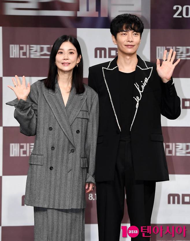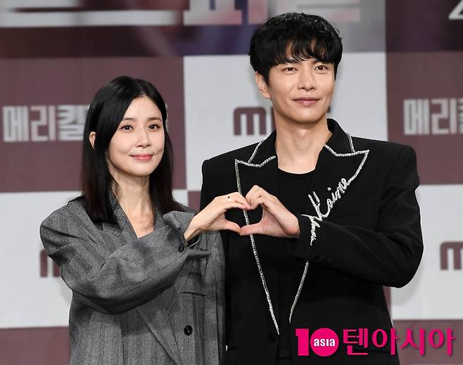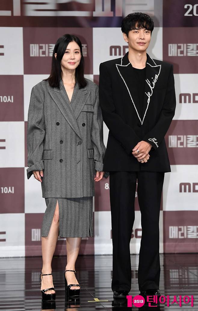 배우 이보영과 이민기가 31일 서울 마포구 MBC 방송센터 골든마우스홀에서 열린 MBC 새 금토드라마 '메리 킬즈 피플' 제작발표회에 참석해 포즈를 취하고 있다.