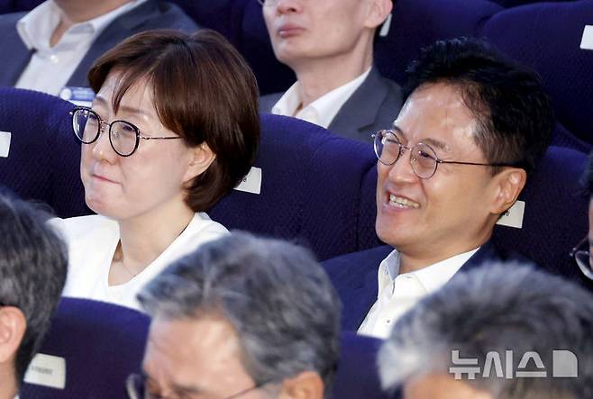 [서울=뉴시스] 최동준 기자 = 대통령실 김정우 국정상황실장과 김현지 총무비서관이 31일 서울 종로구 정부서울청사에서 열린 '국민주권시대 공직자의 길' 고위공직자 워크숍에서 이재명 대통령의 특강을 경청하고 있다. (대통령실통신사진기자단) 2025.07.31. photocdj@newsis.com