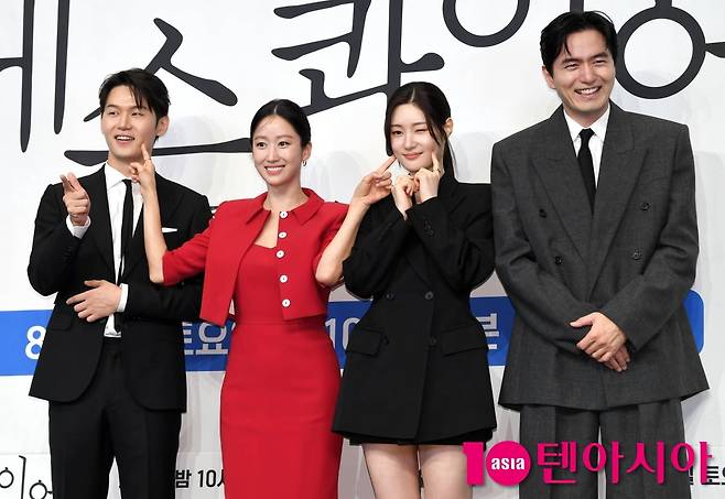 [텐아시아=조준원 기자]배우 이진욱, 정채연, 이학주, 전혜빈이 31일 서울 구로구 신도림 더 링크 호텔에서 열린 JTBC 새 토일드라마 <에스콰이어> 제작발표회에 참석해 포즈를 취하고 있다.