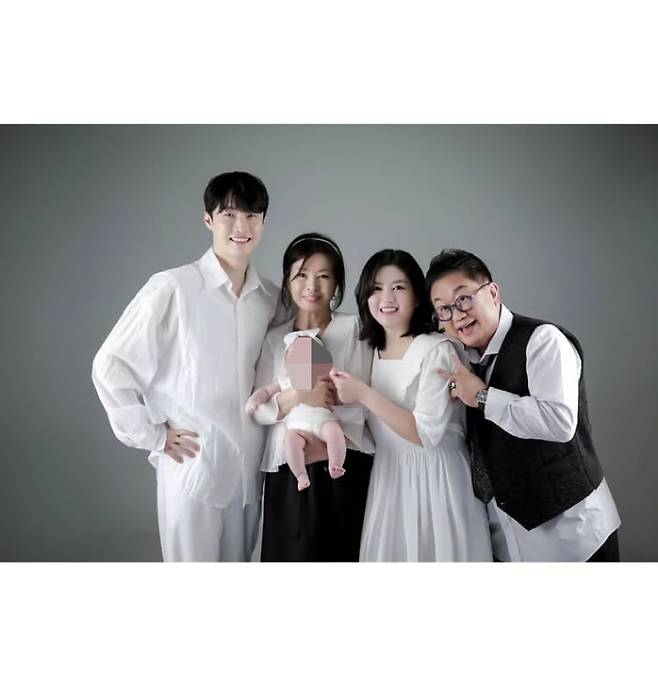 원혁과 그의 아내 이수민, 장인어른 이용식과 장모, 딸 원이엘 양이 가족사진을 남겼다.