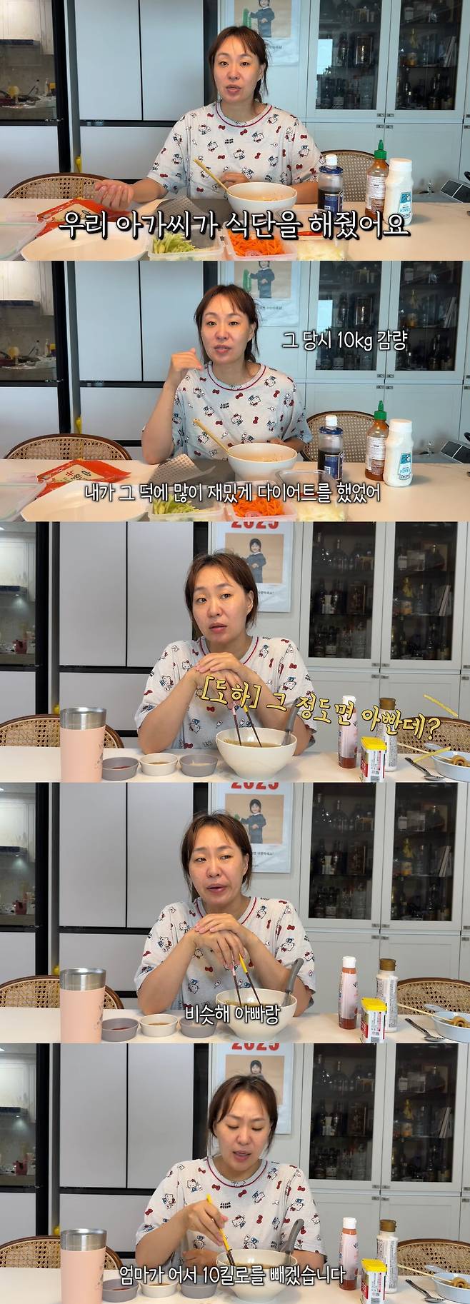 정주리는 "막내 임신 전에 다이어트할 때 우리 아가씨가 식단을 해줬다. 매일매일 두 끼 세 끼를 너무 정성스럽게 차려줬다. 내가 그 덕에 맛있는 거 먹으면서 재밌게 다이어트했었다"라고 밝혔다.
