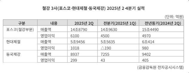 한편 철강업계는 하반기에도 글로벌 공급 조정과 인프라 수요 회복 기대 속에 밀 마진 개선세가 이어질 경우, 실적 회복 흐름이 지속될 것으로 보고 있다. 특히 한국 정부의 중국·일본산 열연강판에 대한 반덤핑 관세 부과와 중국의 철강 감산 정책 등으로 국내 업체들이 반사이익을 얻을 것이란 전망도 나온다.