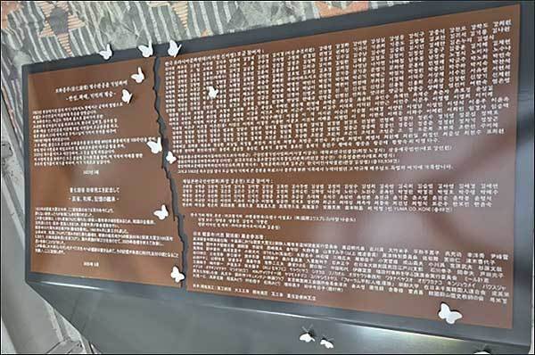 | ▲ 보화종루 성금 낸 사람들 여기에 적힌 한일 시민들의 온정어린 성금으로 보화종루 개보수를 할 수 있었다. |