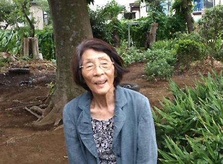 | ▲ 오다케 할머니 기자가 2010년 8월 15일, 찾아갔던 치바현 나기노하라마을 조선인 학살현장에서 증언하는 오다케 할머니, 할머니 뒤 목련나무 아래에 구덩이를 파고 학살된 조선인들을 묻었다고 증언했다. |