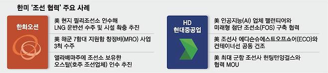조선업계 관계자는 "국내 조선소와 협력 관계에 있는 중소 업체도 미국에 동반 진출할 수 있는 기회가 될 것"이라면서 "이들 중소 업체가 이를 통해 경영이 안정되고 성장한다면 우리 조선업계의 전반적인 경쟁력 강화로 이어질 것"이라고 말했다.