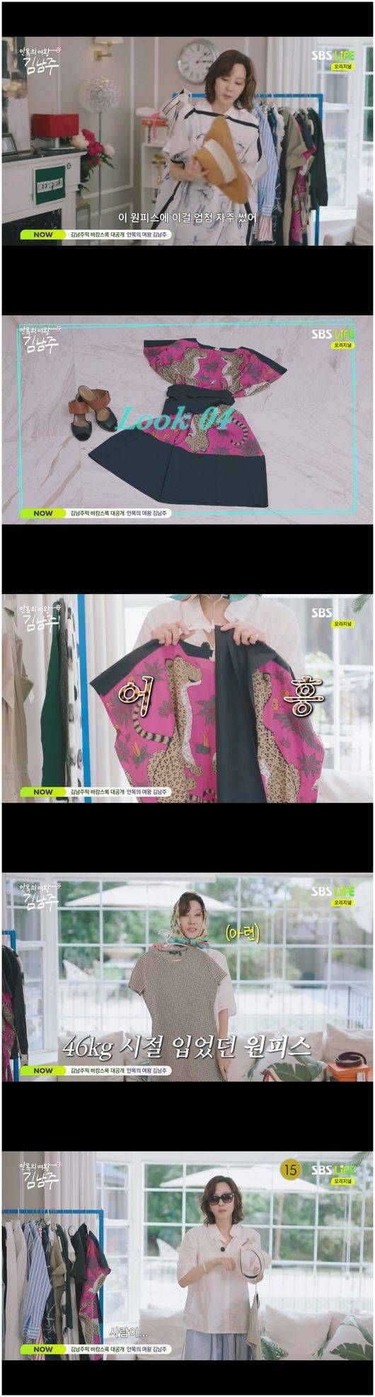 31일 방영한 SBS Life ‘안목의 여왕 김남주’에서는 휴양지 룩을 추천하는 김남주의 모습이 그려졌다. 다양한 느낌의 코디를 뽐내는 김남주는 “치밀하지 않다. 즉흥적이다. 대충 어떻게 입자, 가져가지만, 그렇게 준비했는데 안 입으면 속상하다”라면서 코디에 대해 꼼꼼하지 않아도 자신만의 철칙이 있다고 소개했다.