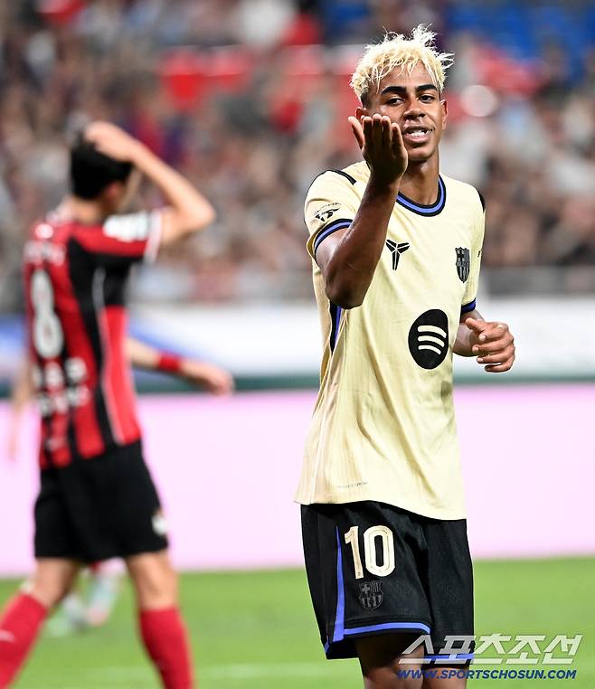 31일 서울월드컵경기장에서 열린 FC 바르셀로나와 FC 서울의 경기, 라민 야말이 재역전골을 터트린 후 기뻐하고 있다. 상암=허상욱 기자wook@sportschosun.com/2025.07.31/