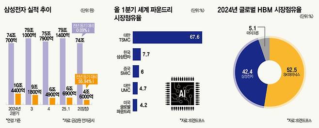 실적만 보면 낙관하기 어렵다. 최근 삼성전자는 시장 전망치를 크게 밑도는 올 2분기 잠정 실적을 발표했다. 삼성전자 영업이익은 연결 기준 지난해 같은 기간에 비해 55% 감소한 4조6000억원을 냈다. 삼성전자 분기 영업이익이 5조원 아래로 내려간 것은 2023년 4분기 이후 6개 분기 만이다.
