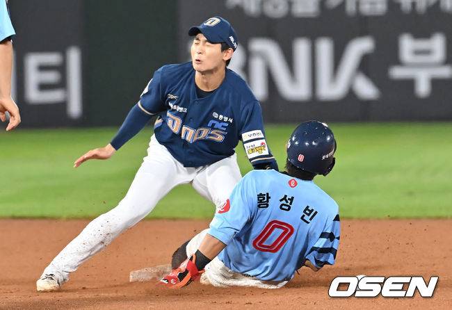 롯데 자이언츠 황성빈이 8회말 2사 1루 전준우 타석때 2루 도루를 성공하고 있다. 2025.07.31 / foto0307@osen.co.kr