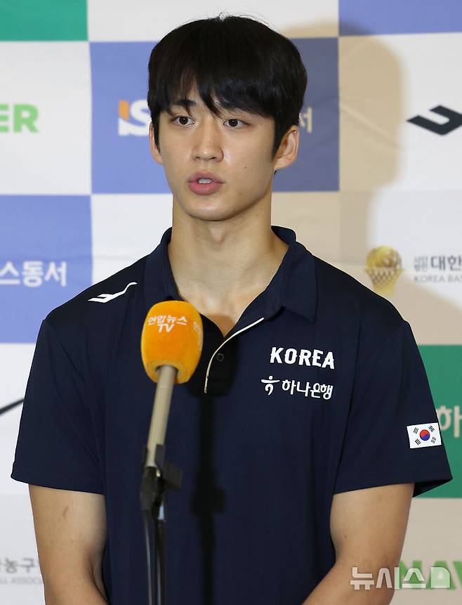[인천공항=뉴시스] 김선웅 기자 = 2025 FIBA 남자농구 아시아컵에 참가하는 남자 농구대표팀 여준석이 31일 인천국제공항에서 출국을 앞두고 인터뷰를 하고 있다. 2025.07.31. mangusta@newsis.com
