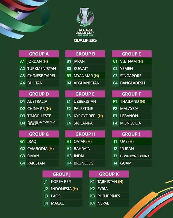 U-23 아시안컵 예선은 오는 9월 3일부터 시작된다. 총 44개국이 참가했고, 4팀씩 11개조 나뉘었다. 인도네시아는 대한민국, 라오스, 마카오와 함께 J조에 편성됐다.