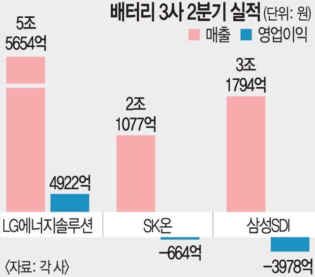 국내 배터리 3사가 2분기 실적을 두고 희비가 엇갈렸다.