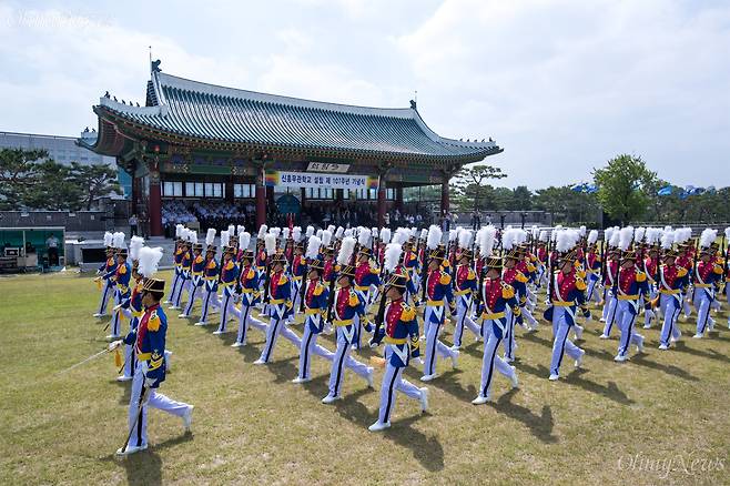 | ▲ 8일 오후 서울 노원구 육군사관학교 연병장에서 열린 독립군과 광복군의 전신인 신흥무관학교의 107주년 기념식에서 생도들이 분열을 하고 있다. |