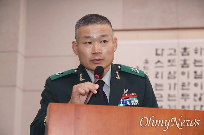 | ▲ 김동혁 국방부 검찰단장이 지난 2024년 7월 19일 국회 법제사법위원회에서 열린 '윤석열 대통령 탄핵소추안 발의 요청' 국민동의 청원 관련 청문회에 증인으로 출석해 답변하고 있다. |