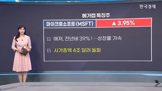 어제 장 마감 이후 애프터 마켓을 통해 실적을 전해드렸었는데요. 매출은 전년 대비 18% 증가했고, 매출과 EPS 모두 시장 기대치를 상회했습니다. 핵심 성장 동력은 클라우드 부문이었습니다. 클라우드 매출은 467억 달러로, 전년 대비 27% 증가했고, 이 중 ‘애져’ 공용 클라우드는 39% 성장하며 지난 분기의 33% 성장률보다 속도를 높였습니다. 이러한 흐름에 힘입어 마이크로소프트의 시가총액은 4조 달러를 넘어섰습니다.