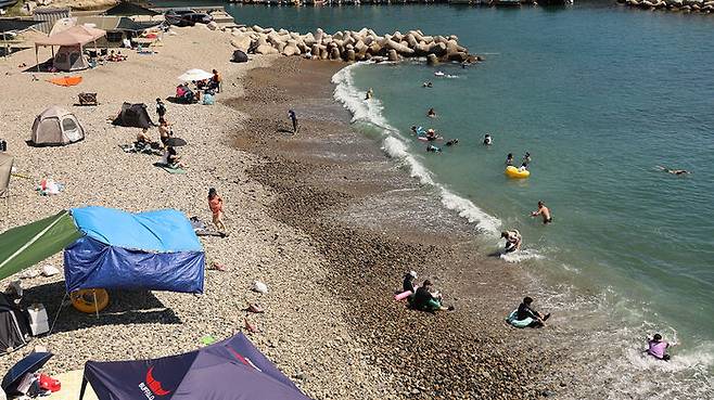 인근에는 텐트를 펼쳐 고기를 구워 먹거나 바다를 바라보며 쉬는 이들로 가득했습니다.