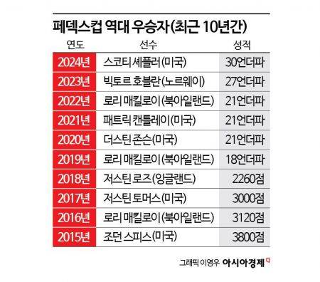 페덱스컵은 매년 주인공이 바뀌었다. 2019년 다시 다승자를 배출했다. '포스트 타이거 우즈'로 불린 매킬로이가 주인공이다. 매킬로이는 2012년 플레이오프 2연승을 거두고도 최종 2위로 아쉬움을 삼켰지만 4년 후인 2016년 결국 첫 우승을 완성했다. 이어 2019년에는 페덱스컵 랭킹 5위로 출발했지만 대역전극을 펼치며 최종 승자가 됐다. 그는 2022년 페덱스컵의 새 역사를 썼다. 사상 첫 페덱스컵 3승 챔프 반열에 올랐다.